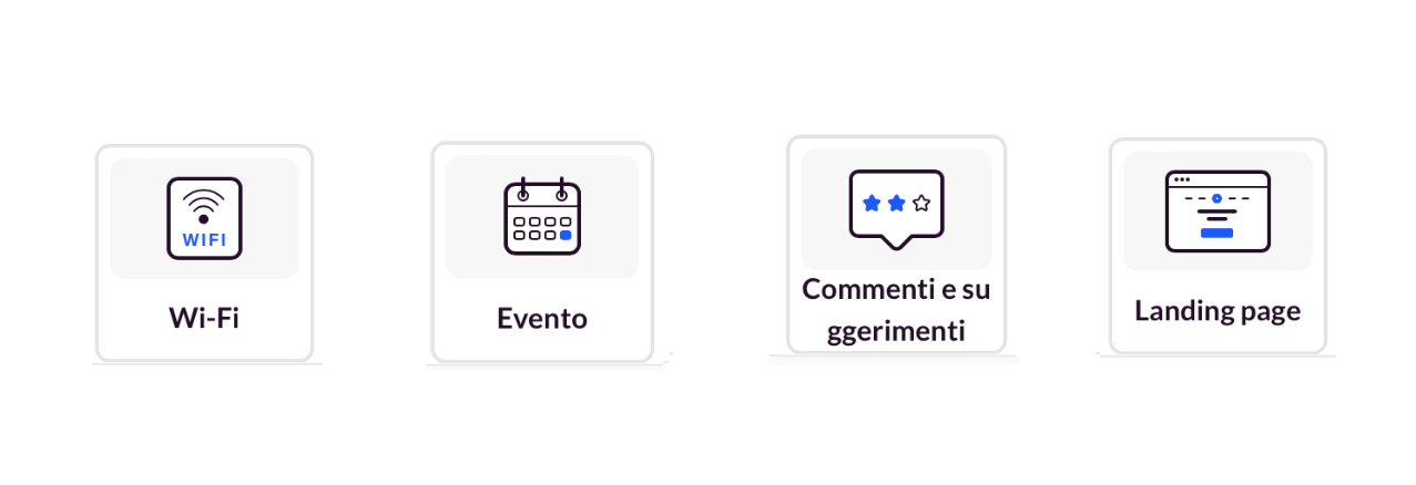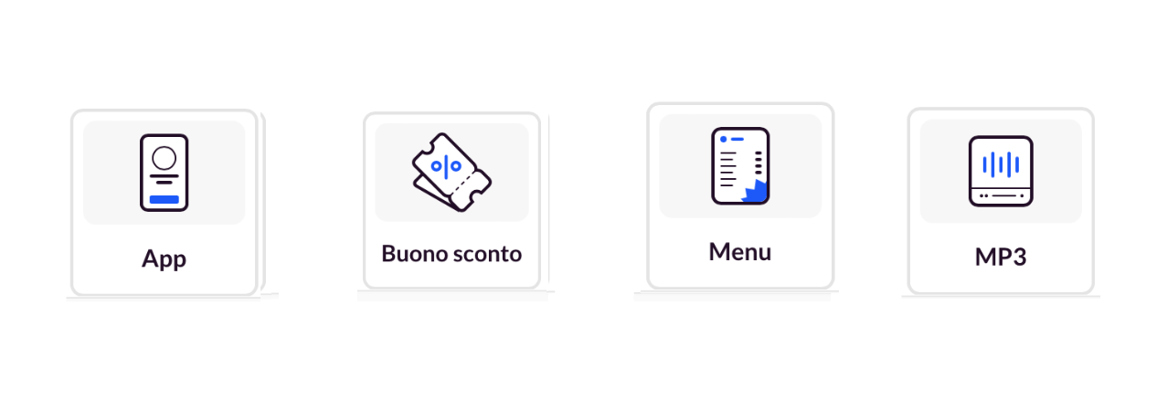 I codici QR possono contenere una grande varietà di dati e si adattano pertanto a ciò di cui hai bisogno, poiché l’URL può reindirizzare l’utente al tipo di contenuto che vuoi con una semplice scansione: un sito web, un PDF, una galleria fotografica, una playlist, listini prezzi, menu, assistenza tecnica, rete Wi-Fi, piattaforma di turni, link ai pagamenti, video, dati di contatto ecc. Le possibilità sono infinite.